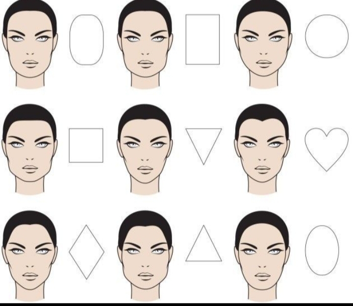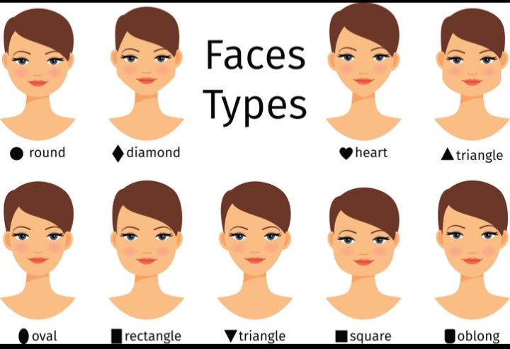 Oblong face or long face: This facial structure has the following characteristics which are: (1) it is long and slim in structure. (2) it is has some similarities with the oval face. (3) it has an elongated feature from the forehead to the chin. (4) some have a prominent chin. (5) it has a low and flat chick bone. OVAL FACE: This facial structure has the following characteristics: (1) it has an high chick bone. (2) it has soft curve jawline. (3) it has wide forehead. (4) it has a narrow line towards the chin. (5) it has the shape as an egg. SQUARE FACE: It has the following characteristics: (1) it has a wide and angular forehead. (2)it has an un-noticed flat chick bone. (3)it has a plump chick. (4) it has an angular jaw. (5) it has an heavy jawline. ROUND FACE: it has the following characteristics: (1)wide curved forehead. (2) half moon shaped jawline. (3)The chin forms a circle. (4) it has a wide chick. (5)the face weight and length are almost the same. THE HEART FACE: they are two different types of heart face and they are: TYPE1: this type of heart face has the following characteristics: (1) it has a broad and wide flat head. (2)it is narrow at the bottom. (3)it those not have a long prominent chin. (4)it has an high chick bone which doesn’t often show unless one smiles because of the weight of the face. TYPE2: this type of heart face has the following characteristics: (1)it has a narrow and pointed forehead. (2)it is narrow at the bottom. (3)it has a long prominent chin. (4)it has an high chick bone. TRIANGLE FACE: TYPE1: (1) it has a wide forehead. (2)it has a wide pointy prominent chick bone. (3) it has a slim line from the chick bone to the jawline. (4)it has a pointy jawline. TYPE2: (1) it has a narrow forehead. (2)it has a wide pointy prominent chick bone. (3)it’s jawline and chick bone almost look like they are on the same line. RECTANGULAR FACE: (1)it has a wide angular forehead. (2) it has a long straight line from the forehead down to the jawline. (3)it doesn’t has a prominent chick bone. (4)it has an angular jawline. DIAMOND FACE: (1)it has a narrow forehead. (2)it has a prominent pointed chick bone. (3)it has a slim straight line from the chick bone to the jawline. (4)it has a prominent jawline and chin.