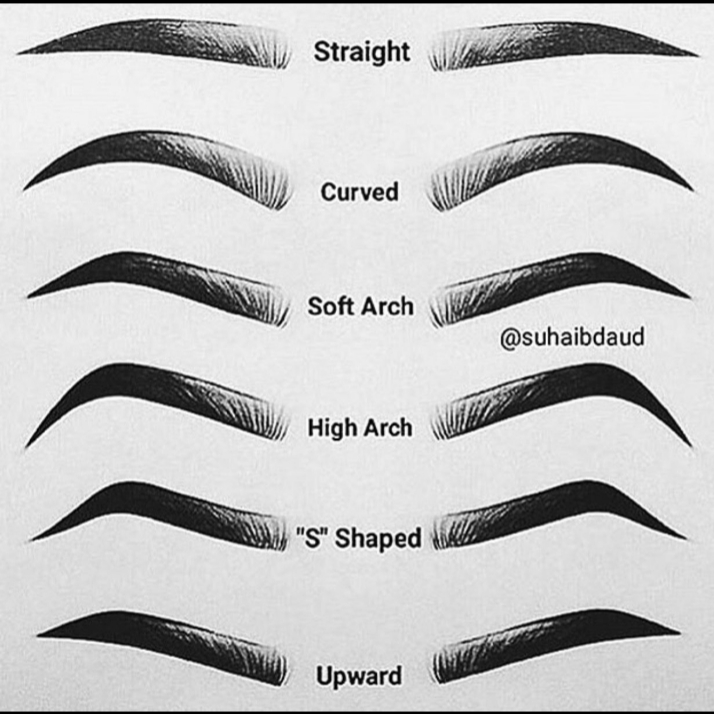 TYPES OF BROWS covered brow: it doesn’t have an ark and is suitable for round faces. Full brow: it is suitable for heart faces, diamond and triangular faces, a full brow should not be tick and big. It should be in medium size and should not have an ark. Structured Brow: it is suitable for oval and long faces, it has an high ark and is always full and bold. Soft Brow: it is suitable for a square or rectangular face, it should not be full and thick. The ark most be soft and the brow must be short and natural.