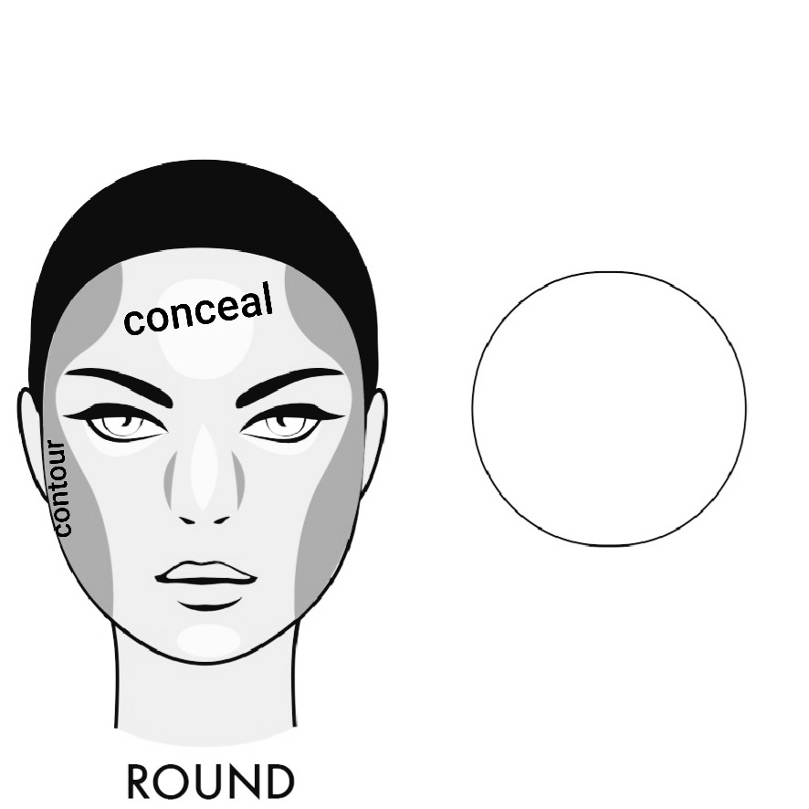 Circular face shape: the circular face shape as described in my previous article is round in structure and the perfect or preferred brow for it is a curved ark brow. “To know how to identify a circular face you can kindly go to my previous post”. The circular face shape also has it’s own unique way to be contoured and concealed as shown in the image below: