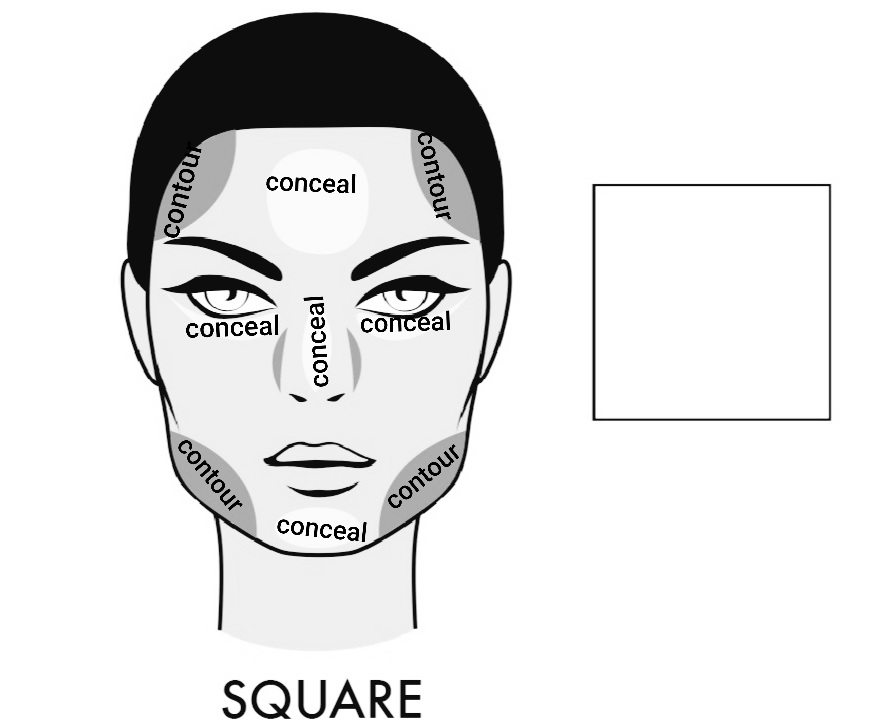 Square face shape: its own unique and preferred way of contouring and concealing is shown in the image below.