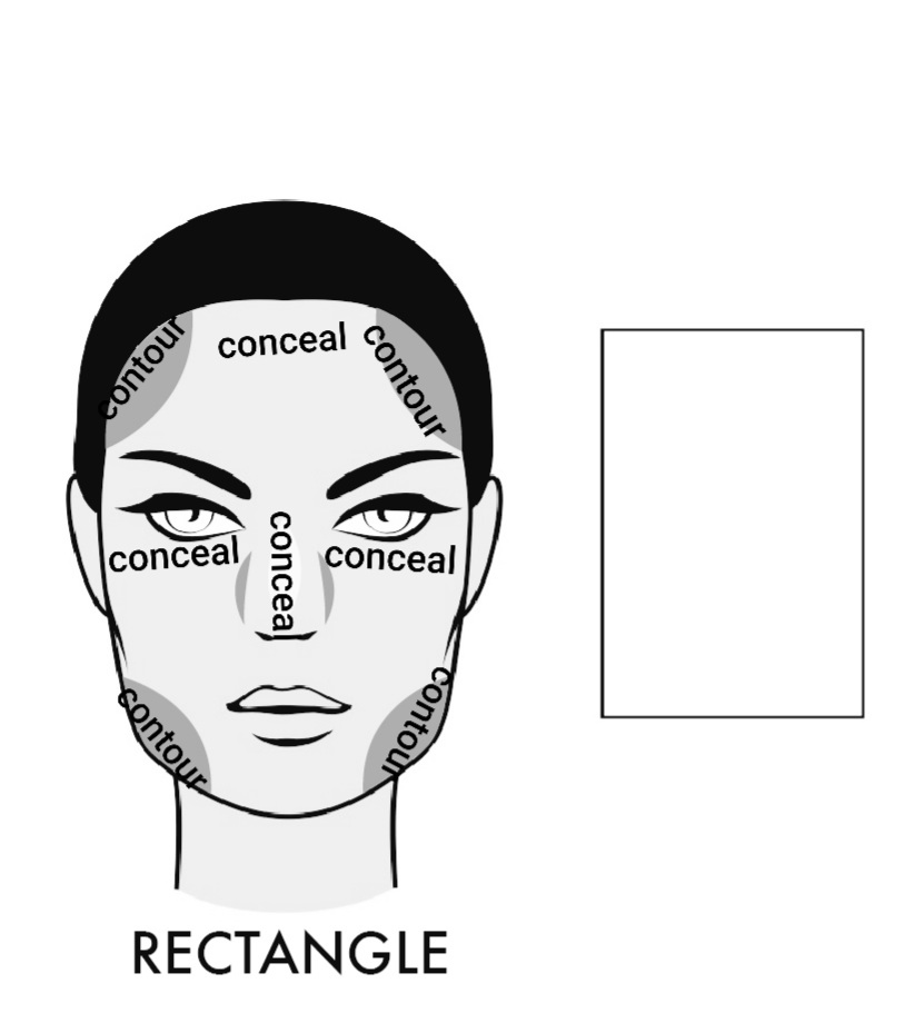Rectangular face shape: its own unique and preferred way of contouring and concealing is shown in the image below.